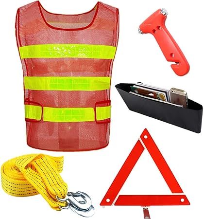 Amazon 車の緊急用キット 自動車の常用道具 三角停止版 牽引ロープ 窓ガラスハンマー シートベルトカッター 反射服 緊急対応セット 車 バイク